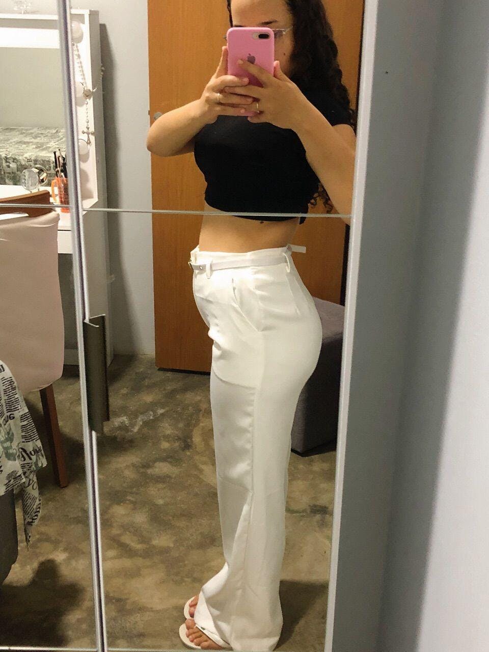 Com modelagem de perna larga e cintura alta, ela alonga a silhueta e oferece um caimento solto, leve e sofisticado — perfeita para quem busca um visual moderno sem abrir mão do conforto.